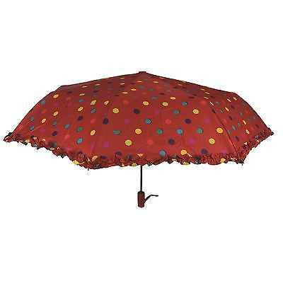 Umbrella with Automatic open/close. With polka dots & frills. RED Bermoni