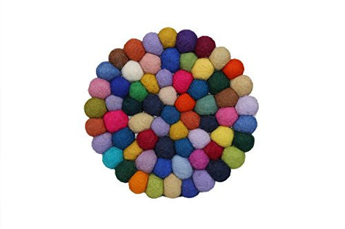 Colorful felt ball coaster and trivet approx. size of 15 diameter and 2 height, Finest quality hand dyed with individually chosen colors and compressed by hand in each color ball and then sewed individual color in strong nylon sting. Colors are 100% fastness and guaranteed. It is soft, smooth and warms. Its light color combination will add style and color stand out in any room. It fits anywhere in your bedroom or living room or in office room